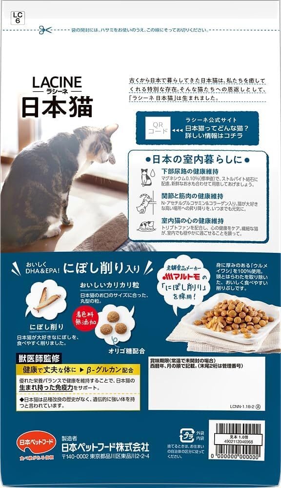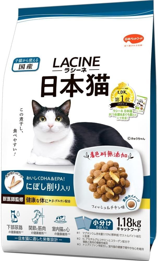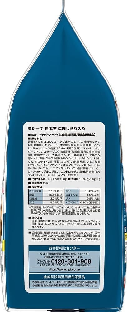 ■ 【日本ペットフード】ラシーネ日本猫にぼし削り入り 1.18kgは、愛猫のために特別に設計された栄養満点のフードです!