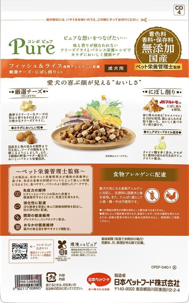 ■ 【日本ペットフード】コンボピュア フィッシュ&ライス 540gは、愛犬の健康をしっかり支えるために特別に設計されたフードです!