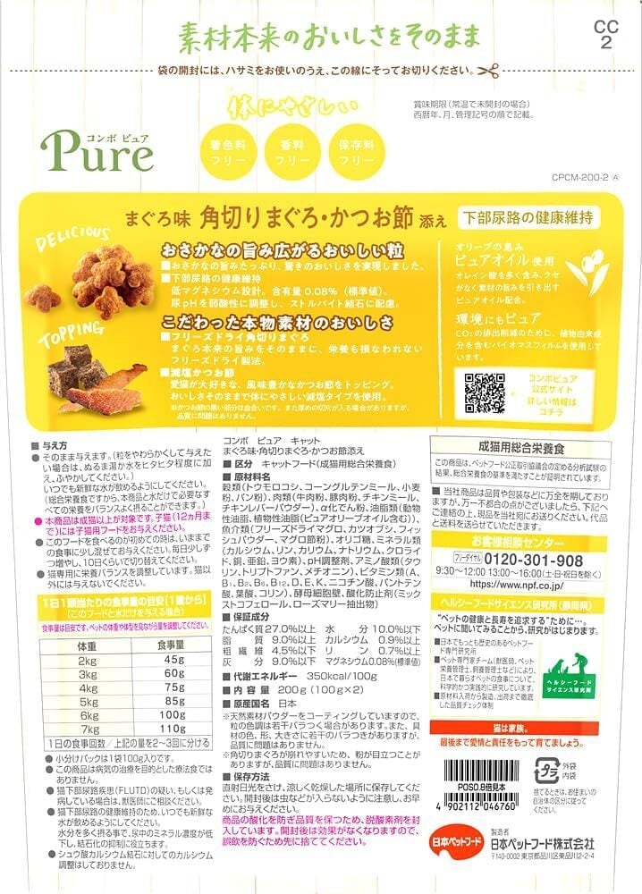 ■ 【日本ペットフード】コンボピュア まぐろ味・角切りまぐろ・かつお節添え 200gは、愛猫の健康をしっかり支えるよう特別に設計されたフードです!