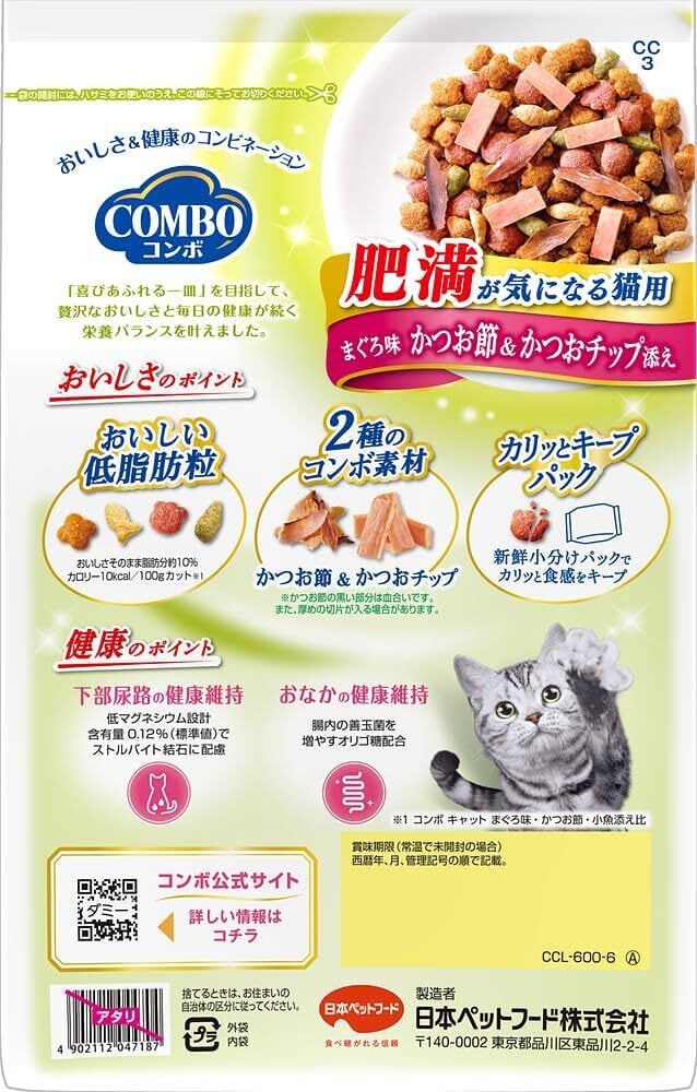 ■ 【日本ペットフード】コンボ 肥満が気になる猫用まぐろ味・かつお節・かつおチップ添え 600gは、愛猫の健康をしっかり支えるよう特別に設計されたフードです!