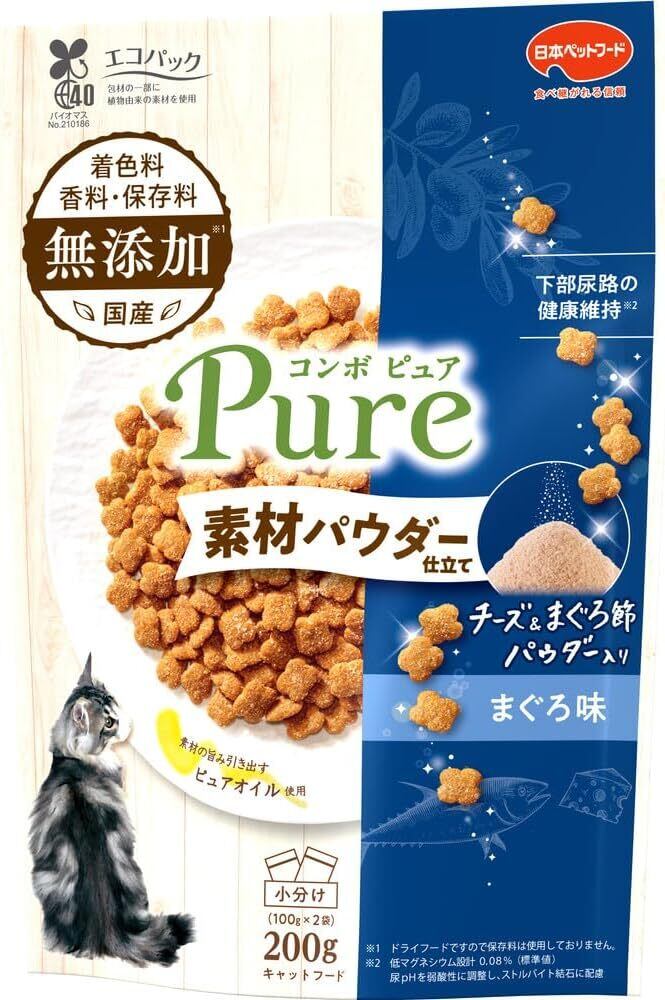 ■ 【日本ペットフード】コンボピュア まぐろ味・チーズ&まぐろ節パウダー仕立て 200gは、愛猫の健康をしっかり支えるよう特別に設計されたフードです!