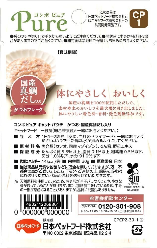 ### 商品説明文【日本ペットフード】コンボピュア パウチかつお・国産真鯛だし入り 30g