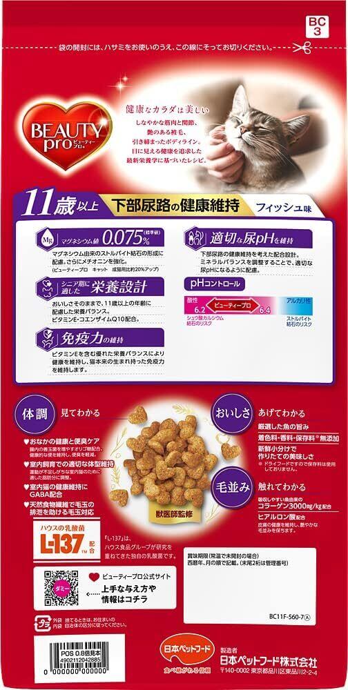 すべての猫種に自信を持ってお届けする【日本ペットフード】ビューティープロ 猫下部尿路の健康維持 11歳〜 560g。この商品とともに、愛猫との特別な時間を育んでください!