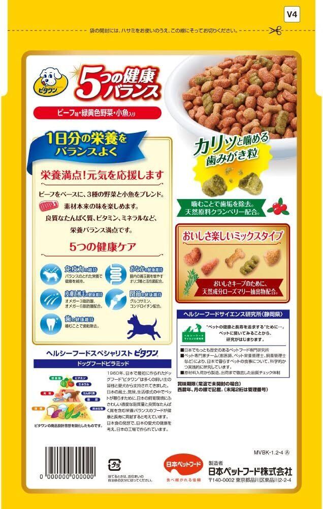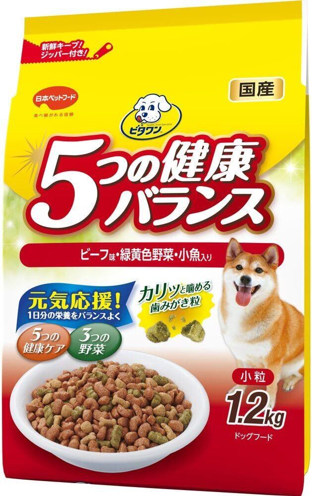 ■ 【日本ペットフード】ビタワン 5つの健康バランス ビーフ味・野菜入り 小粒 1.2kgは、愛犬の健康をしっかり支えるよう特別に設計されたフードです!