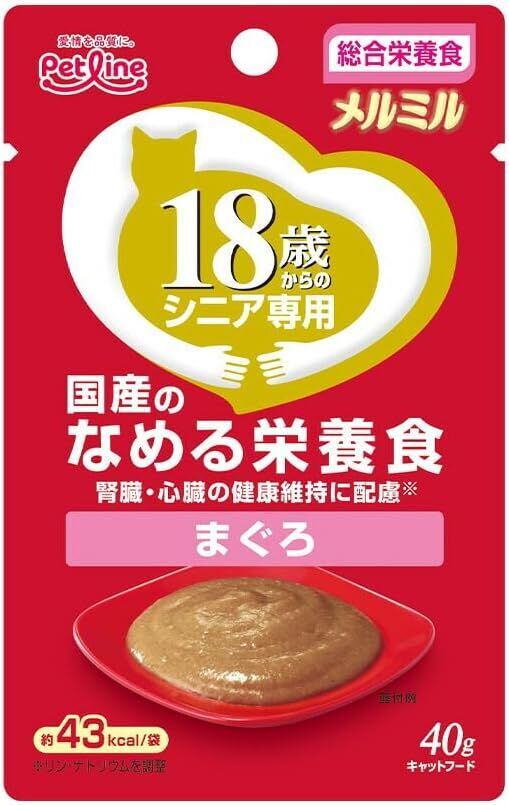 ■ 【ペットライン(PETLINE)】キャネット メルミル 18歳〜 まぐろ 40gは、高齢の愛猫のために特別に設計された贅沢なフードです!