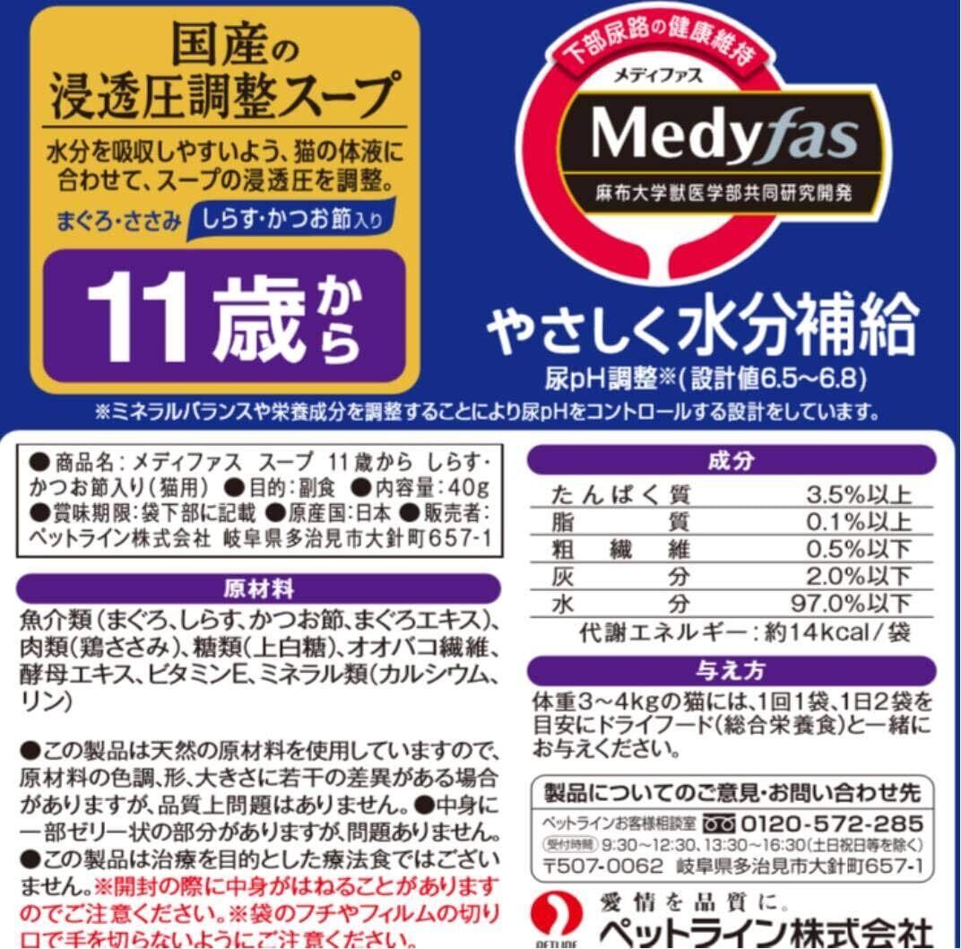 ### 11歳以上の猫ちゃんに最適♪【ペットライン(PETLINE)】メディファス スープパウチ 11歳〜 しらす・かつお節入り 40g