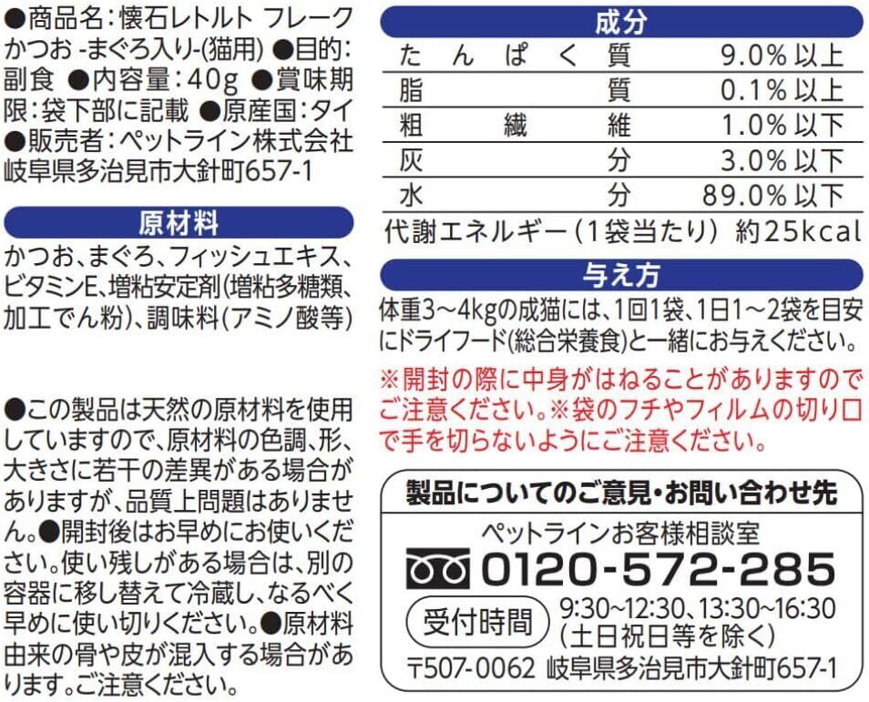 ### 愛猫のための特別な一品♪【ペットライン(PETLINE)】懐石レトルト フレーク かつお‐まぐろ入り‐ 40g
