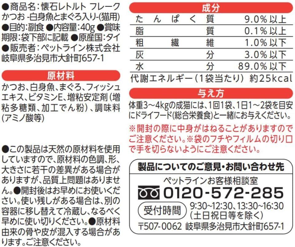 ### 愛猫のための特別な一品♪【ペットライン(PETLINE)】懐石レトルト フレーク かつお‐白身魚とまぐろ入り‐ 40g
