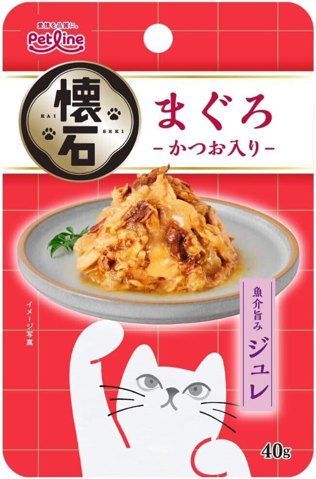 すべての猫種に自信を持ってお届けする【ペットライン(PETLINE)】懐石レトルト ジュレ まぐろ‐かつお入り‐ 40g。この商品で、愛猫との特別な時間を育んでください!