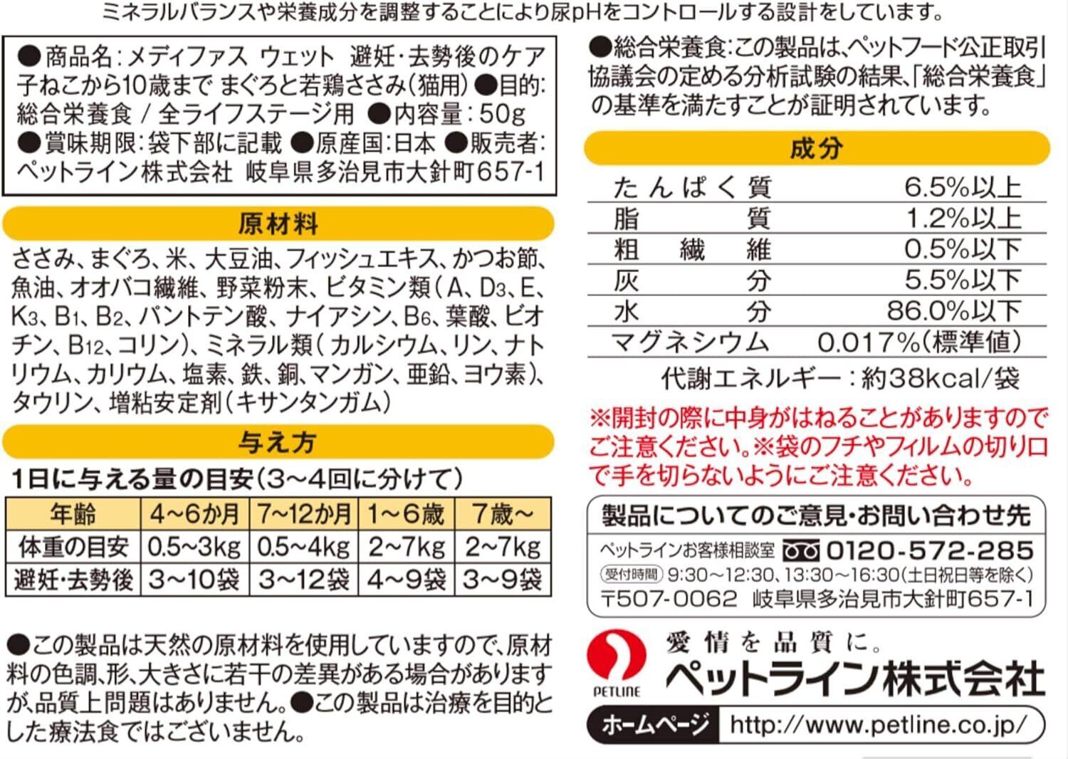 【ペットライン(PETLINE)】メディファス ウェット 避妊・去勢後のケア子ねこから10歳までまぐろと若鶏ささみ 50g