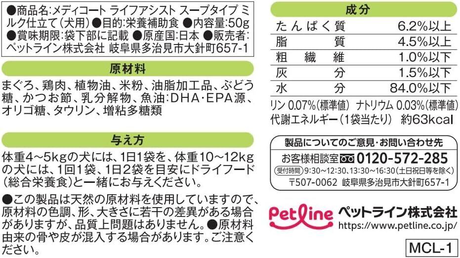 【ペットライン(PETLINE)】メディコート ライフアシスト スープタイプ ミルク仕立て 50g