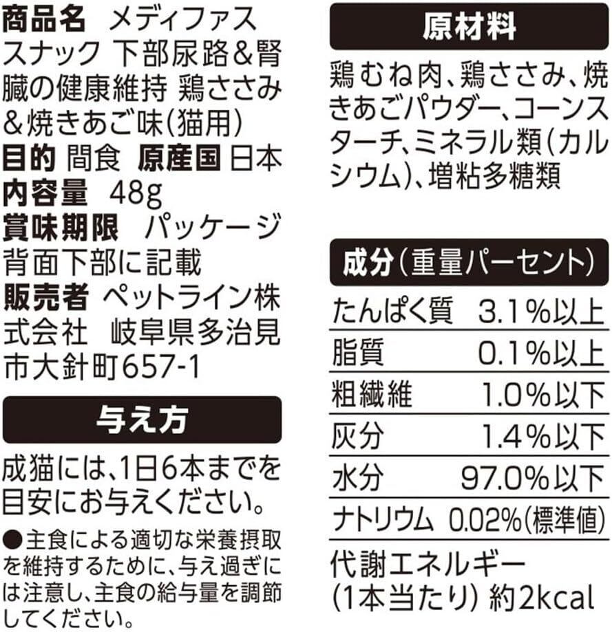 ■ 【ペットライン(PETLINE)】メディファス 下部尿路&腎臓の健康維持 鶏ささみ&焼きあご味 48gは、すべての猫種に適したおやつです!