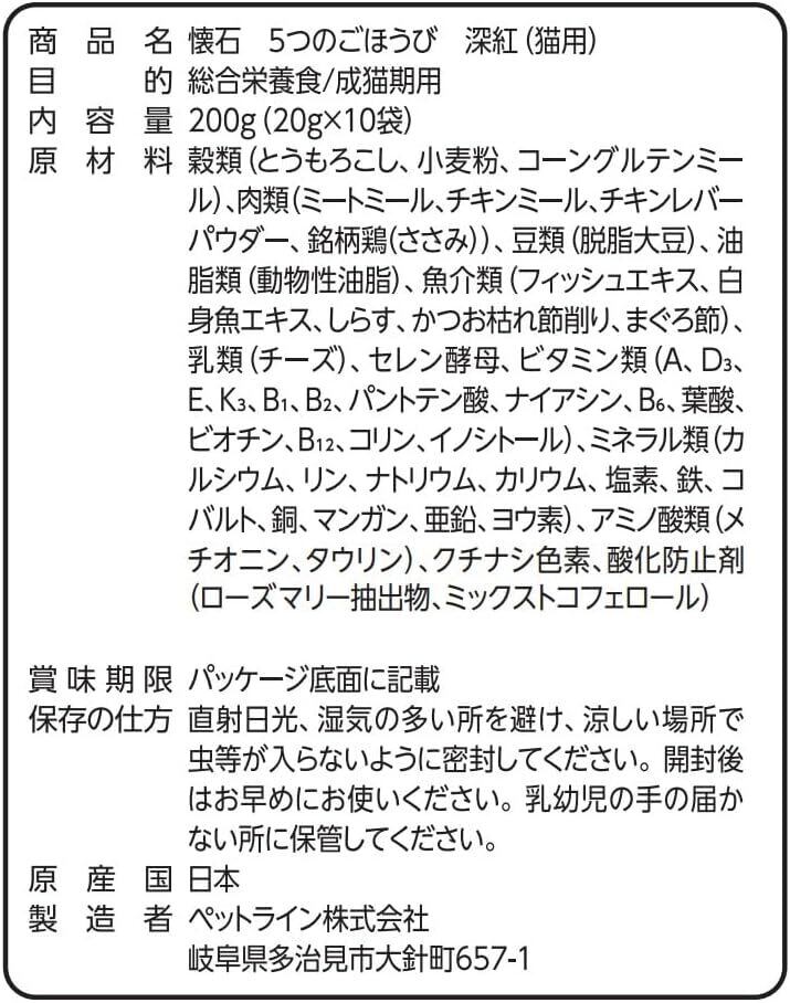 【ペットライン(PETLINE)】懐石5つのごほうび深紅 200g