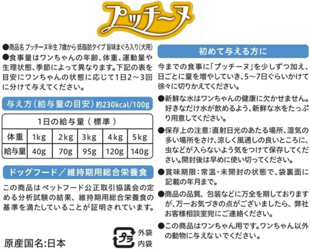 ぜひ、【ペットライン(PETLINE)】プッチーヌ半生 低脂肪 7歳〜 旨味まぐろ入り 200gをお試しください!愛犬への特別なご褒美がこの商品でさらに楽しめますよ!