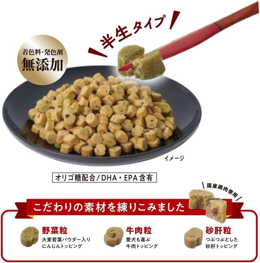 『本格具材を粒にして練り込んだ半生タイプ 小食・偏食・グルメなワンちゃんのために、とにかくおいしさにこだわって、つくった総合栄養食です。』