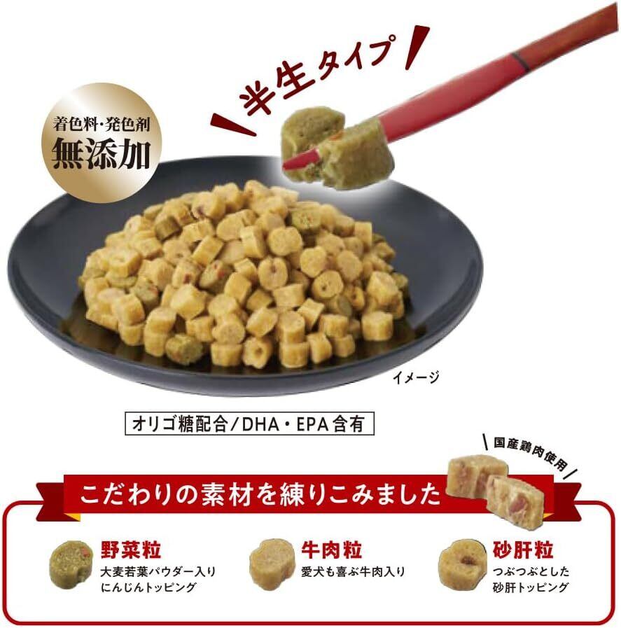 新鮮で高品質な国産素材を贅沢に使用した信頼のフードです!愛犬が喜ぶ味わいを追求しつつ、健康に配慮した素材選びを行っています。日常の食事や特別なおやつしてもぴったりの一品ですので、ぜひお試しください!