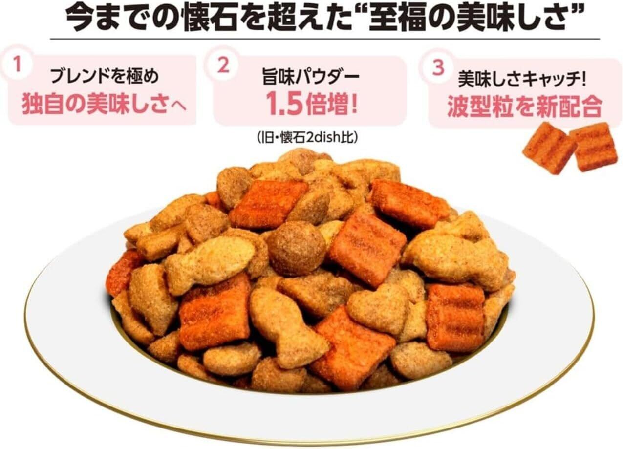 愛猫の毎日のごはんに“おいしさ”と“健康”を両立した人気シリーズ「懐石 2つのごほうび」。 香ばしいまぐろ節を添えた粒と、厳選素材を使用した粒の2種類をミックス。 食べ飽きしにくく、香り高い味わいが食欲をそそります。 総合栄養食として、成猫に必要な栄養をバランスよく配合。 国産・国内製造で安心品質、小分けパックでいつでも開けたての美味しさをキープ。 食べやすい粒サイズで、グルメな猫ちゃんにもぴったりです。